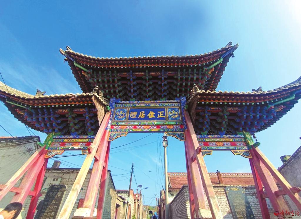 五寨縣三岔木牌坊坐落于三岔堡十字大街的北口,始建于明萬(wàn)歷九年(1581年)。木牌坊坐北朝南,座基為60厘米高的石砌臺(tái)基。牌坊呈三項(xiàng)疊襯“品”字形制,四楹三門,坊高7.25米,通寬11.2米,其中門高3米,寬3.15米,車馬通行;兩邊門略低,高2.65米,寬2米,只呈門樣,不作通行。四楹都用雙木斜卡,并抱有雕獅的石鼓,以鐵條箍制,既固根基,又顯威嚴(yán)。欄坊下裝有木刻匾額,正面題“正位居體”,背面題“大觀在上”。頂端起脊彩飛,雙層檐頭,青瓦蓋頂;下檐五步彩飛檐頭拱,結(jié)構(gòu)奇巧,造型美觀,檐頭四角掛有風(fēng)鈴,微風(fēng)輕拂,鈴聲悠揚(yáng),蔚為壯觀。三岔木牌坊是五寨縣境內(nèi)僅存的一座木結(jié)構(gòu)明代古建筑,具有較高的建筑文化水平和藝術(shù)鑒賞價(jià)值。2007年6月6日,忻州市人民政府公布其為市級(jí)文物保護(hù)單位。