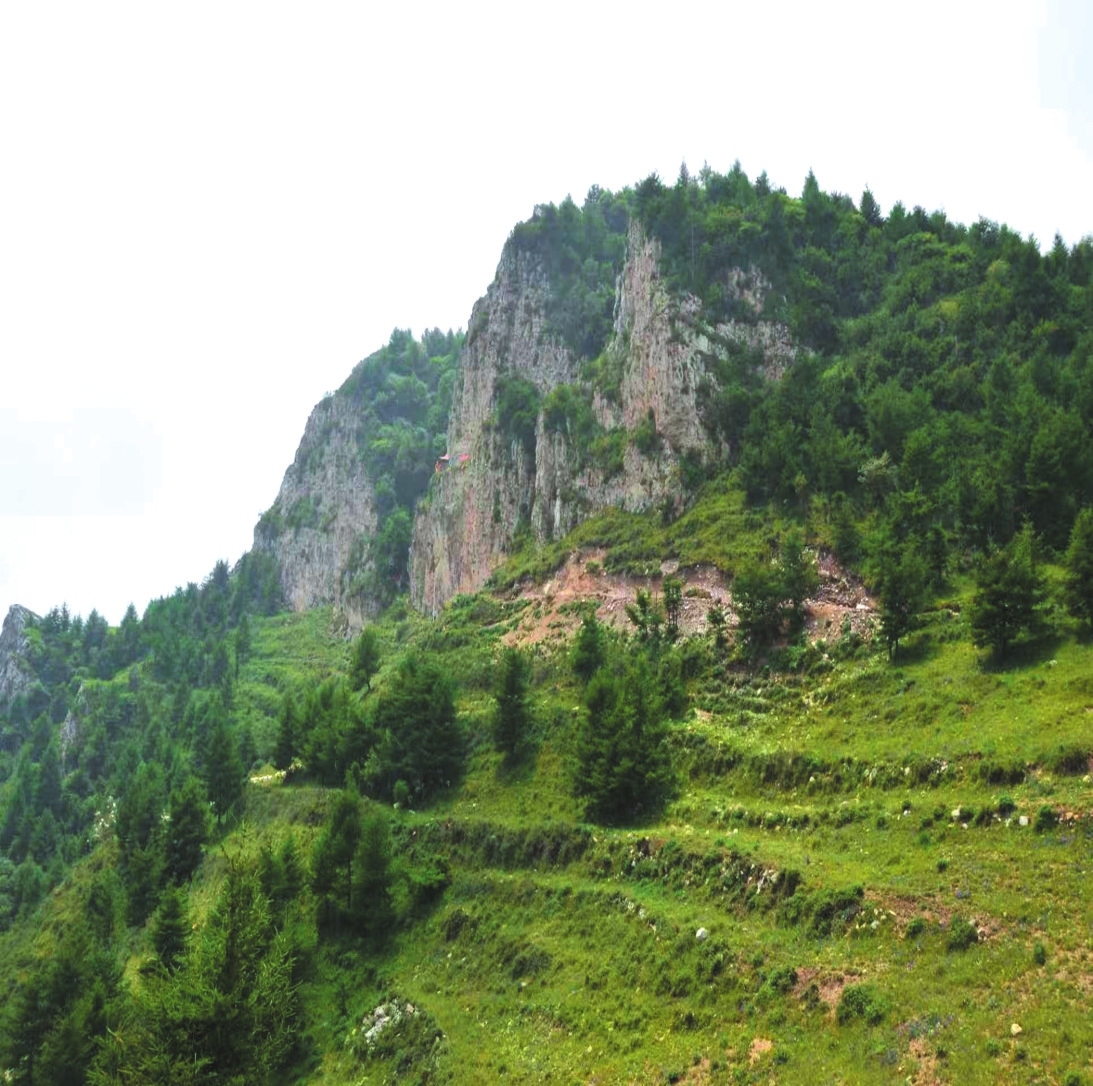 老君洞山峰的凸起點位居四山中央,奇險峻極奪人眼球,與不遠處海拔2364米的水背尖遙遙相對,山西電視臺的1125差轉臺就建在上面。山中的云霧像一條白色綢帶纏繞在兩座山巒自然形成的溝壑間,為水背尖與老君洞增添了一種難以看穿的神秘色彩。
