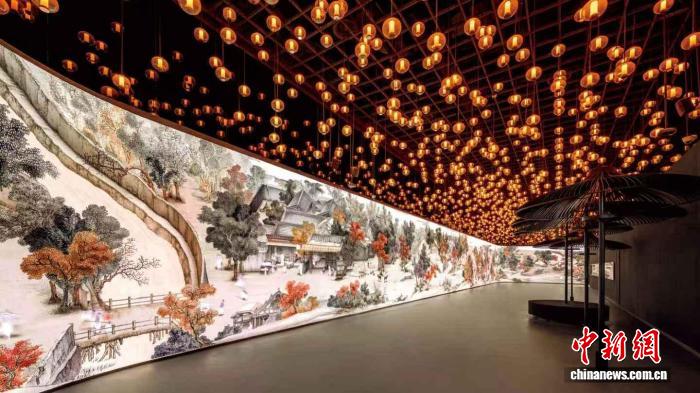 《金陵圖》為清代畫(huà)家馮寧創(chuàng)作的紙本設(shè)色長(zhǎng)卷,現(xiàn)藏于德基藝術(shù)博物館?!督鹆陥D》在十米余長(zhǎng)、連續(xù)而多元的場(chǎng)景中,共繪有人物形象533個(gè)、動(dòng)物90只、車馬轎輿24余、店鋪攤販40余,郊外風(fēng)光宜人,百姓和樂(lè);城內(nèi)商業(yè)繁華,上士高賓、商賈攤販齊聚,熙熙攘攘,熱鬧非凡,被譽(yù)為“最能代表南京”的傳世古畫(huà)。宋代中國(guó)社會(huì)各個(gè)階層的生活方式、經(jīng)濟(jì)活動(dòng)以及宋代的建筑和服裝風(fēng)格,均在畫(huà)中得到了淋漓盡致的展現(xiàn),具有極高的歷史文化價(jià)值。2021年起,德基藝術(shù)博物館通過(guò)數(shù)字科技煥新文化遺產(chǎn)《金陵圖》,打造“金陵圖數(shù)字藝術(shù)展”,開(kāi)展幾年來(lái)一直以其前沿的互動(dòng)體驗(yàn)和沉浸式觀展模式,廣受各界好評(píng)。