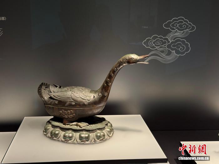 11月11日,大都會(huì)藝術(shù)博物館藏明代雁形銅熏爐在上海博物館東館展出。 中新社記者 康玉湛 攝