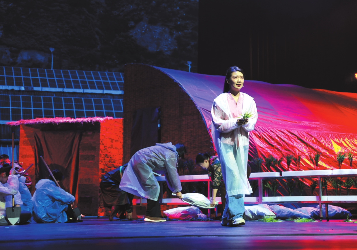 話劇這種藝術(shù)樣式,要抵達(dá)一個(gè)成熟的高度,不容易,需要十分強(qiáng)烈的藝術(shù)表現(xiàn)力和高度的矛盾沖突呈現(xiàn)。能不能讓觀眾看的時(shí)候動(dòng)容,看完還能留下印象,就有了施展拳腳的余地。把人物置于矛盾的漩渦,才能突出人物形象。這個(gè)適用于小說創(chuàng)作,同樣適用于劇本塑造。只有在矛盾的漩渦中,人物才能成長,觀眾才能買賬。這一點(diǎn),《三棵樹下》做得可圈可點(diǎn)。無論是一開始大雨對(duì)蔬菜大棚的極大毀壞,還是曹民財(cái)不折不撓的堅(jiān)持“退股”,甚至是城里男友的不理解、提出分手,都是加劇矛盾、讓農(nóng)學(xué)專業(yè)畢業(yè)的女大學(xué)生李小雨這個(gè)人物形象更加豐滿圓熟的重要手段。