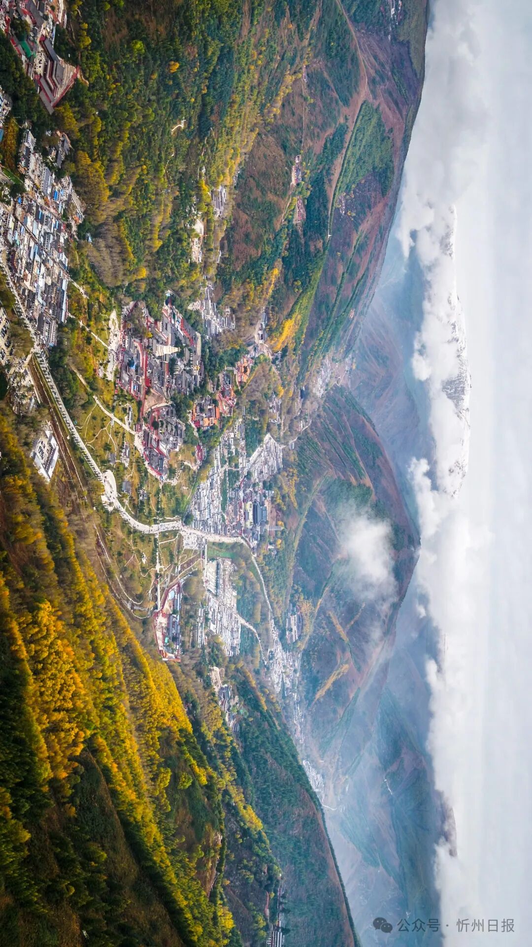 ▼(請橫屏觀看,五臺山臺懷鎮(zhèn)中心區(qū)。攝影楊國軍)