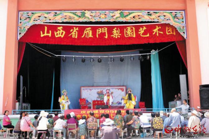 本報(bào)訊 薪火相傳梨園情,送戲下鄉(xiāng)頌黨恩。7月3日上午10時(shí)許,代縣峨口鎮(zhèn)上木角村委會(huì)大院的“瑞祥舞臺(tái)”上,鑼鼓鏗鏘,喧樂縈耳,熱鬧非凡,代縣雁門梨園藝術(shù)團(tuán)(原代縣峨口退休老干部戲迷樂開心藝術(shù)團(tuán))正在這里演出,與該村黨員干部群眾共慶黨的99周年華誕,歌頌黨的恩情。演職人員以群眾喜聞樂見的形式,抒發(fā)老干部愛黨、愛國(guó),永遠(yuǎn)跟黨走的豪情壯志。