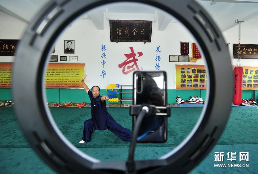 8月5日,石同鼎直播六合拳拳法。時值暑假,為減少聚集習(xí)武帶來的疫情風(fēng)險,同時豐富孩子們的暑期生活,六合拳第八代傳承人石同鼎在直播平臺開通了賬號,每天帶領(lǐng)學(xué)生進(jìn)行網(wǎng)絡(luò)直播教學(xué)演示,通過“云端”傳承非遺文化。 今年59歲的石同鼎是泊頭六合拳第八代傳人,他自幼跟隨父親習(xí)武。2001年父親離世后,石同鼎便承擔(dān)起傳承六合拳的重任。2002年石同鼎建起六合武館,開始教徒弟習(xí)武練拳。 作為傳統(tǒng)武術(shù)中長拳的一種,河北的泊頭六合拳有400余年歷史,被列入國家級非物質(zhì)文化遺產(chǎn)名錄。 “通過網(wǎng)上直播,更多的人可以了解六合拳、練習(xí)六合拳。”石同鼎說,他希望能把六合拳推向世界,傳得更遠(yuǎn)。新華社記者 牟宇 攝