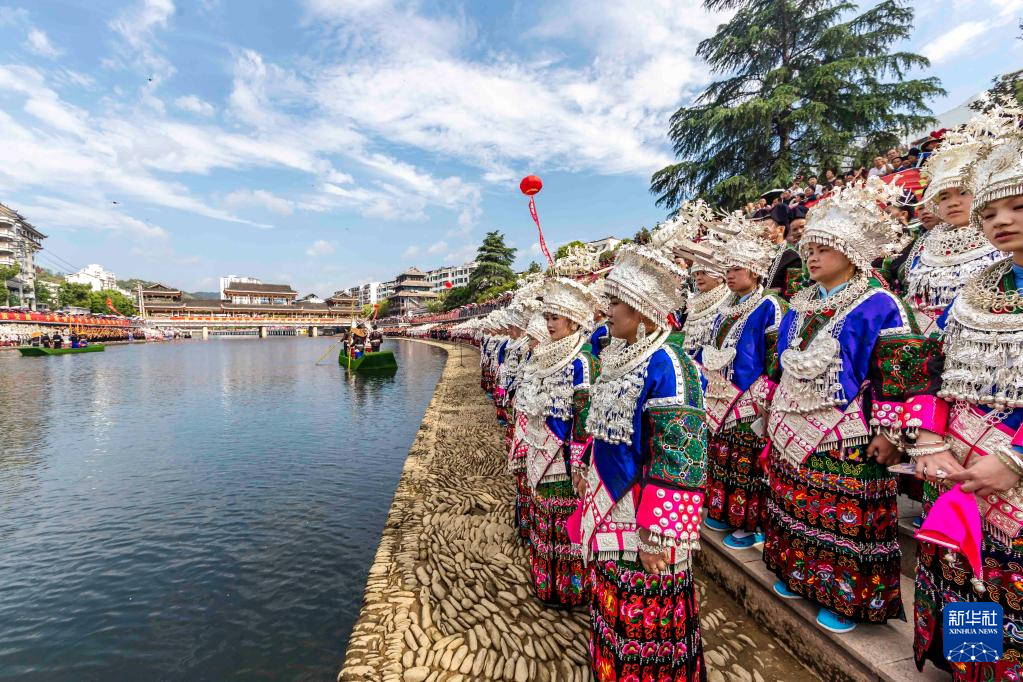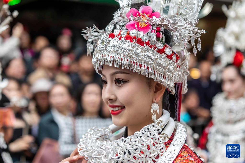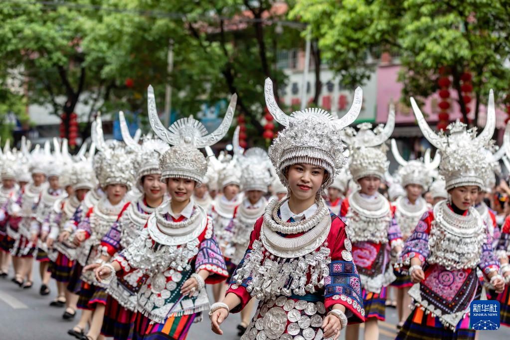 5月2日,人們在貴州省臺江縣參加苗族姊妹節(jié)盛裝巡游。