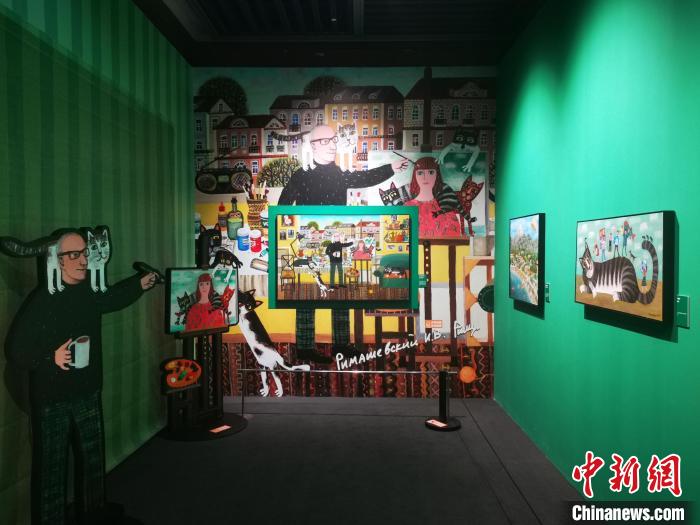 圖為四川博物院“尋喵啟事”藝術(shù)展展品。(單鵬 攝) 29日,“尋喵啟事”藝術(shù)展在成都與觀眾正式見面。當(dāng)天上午,這場(chǎng)以貓為主題的藝術(shù)展在四川博物院拉開序幕。不同于四川博物院一貫的古樸厚重的展覽風(fēng)格,本次特展色彩明亮、童趣盎然,展廳還設(shè)置了多個(gè)以貓為原型的藝術(shù)裝置和沉浸互動(dòng)藝術(shù)空間,讓展覽更加妙趣橫生。 “尋喵啟事”藝術(shù)展展出了白俄羅斯藝術(shù)家利馬舍夫斯基·伊戈?duì)枴ぞS羅洛維奇和夫人謝梅廖娃·柳德米拉·列奧尼多夫娜共50幅藝術(shù)畫作。兩位藝術(shù)家將自家飼養(yǎng)的貓咪和其生活的城市明斯克共同融入一幅幅色彩明亮的畫作,構(gòu)建了一個(gè)屬于“喵星人”的度假樂園。