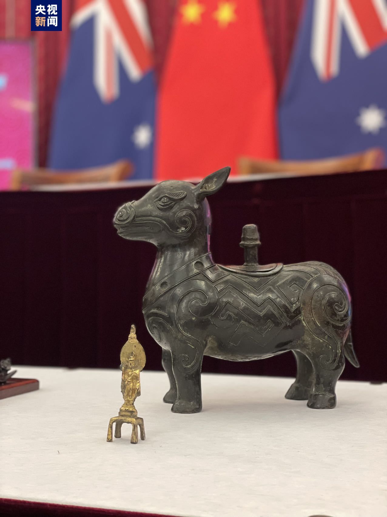 本次歸還的文物包括潛龍化石、鎏金觀音銅像和彩繪陶制人物騎馬俑。經(jīng)初步鑒定,潛龍化石屬于晚侏羅世到早白堊世的恐龍化石,而觀音銅像和騎馬俑的歷史可追溯到唐代甚至北朝,具有珍貴的歷史文化價值。同時,澳大利亞國家美術(shù)館還另外向中國政府捐贈了一件牛形的盛酒禮器——“犧尊”。我國文物專家通過對文物基本信息和圖片的判斷,鑒定這件“犧尊”用途為酒器,是明清或近代的仿古文物藝術(shù)品。