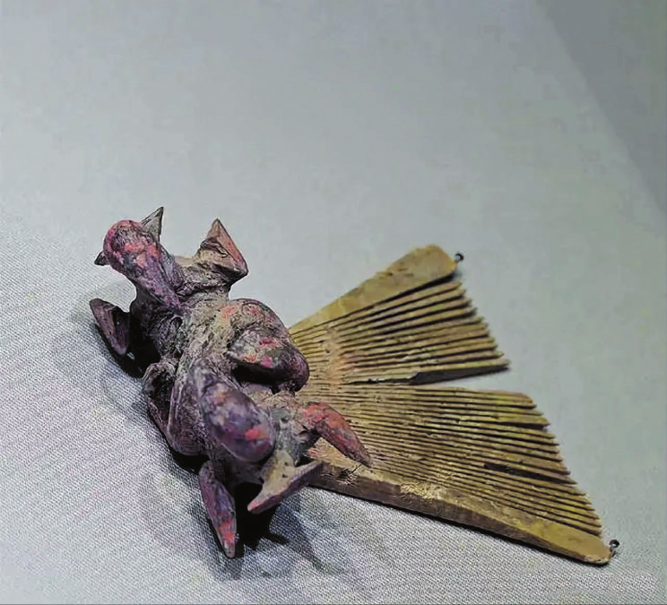 從北白鵝墓地500多件文物中精選出來的骨梳、銅盒、飾品等,大小不一、形態(tài)各異,浸潤著時光的痕跡。銅盒里面的膏狀物經(jīng)檢測為化妝品,古代女性妝容有三種顏色:白粉覆臉、黛黑描眉畫眼、朱砂或胭脂涂抹口紅。從骨梳來看女性裝飾,春秋時期已經(jīng)有骨笄等束發(fā)工具,沈從文編的《中國古代服飾研究》中也提及女子成年“及笄”。臨汾隰縣瓦窯坡墓地出土的東周骨梳,上下兩面榫卯對應(yīng),骨梳背上木質(zhì)榫接左右對稱有一對張開翅膀的鳥。周代服飾主要為上衣下裳、上衣右衽,衣服材質(zhì)多是皮毛、麻、葛等。此外東周時期,青銅鏡制作工藝日趨精美,使用頗為普遍。綜合這些元素,得以想象鏡中的燕姬著禮服、袍、裙、冠飾、玉珠等,或見烏黑的發(fā)髻露出一對展翅欲飛的鳥兒,顯現(xiàn)古代女性別致的嫵媚。