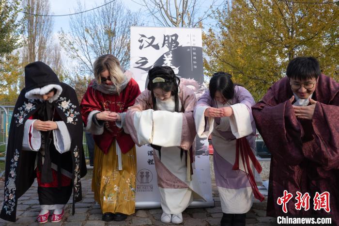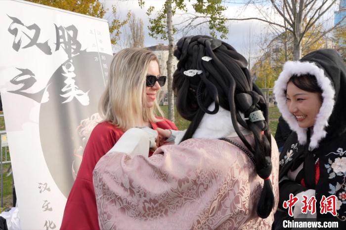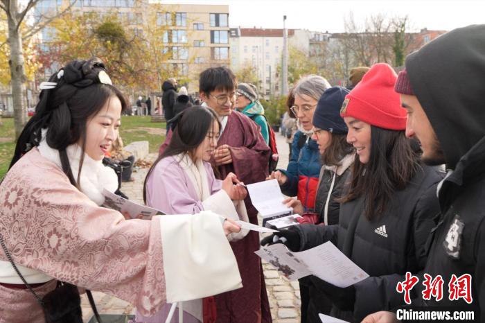 中新網(wǎng)柏林11月26日電 “漢服之美·漢服秀體驗活動”26日在柏林墻公園舉行。該活動由漢景帝陽陵博物院與德國漢文化藝術(shù)交流中心共同舉辦,吸引了眾多旅行者與往來行人互動。