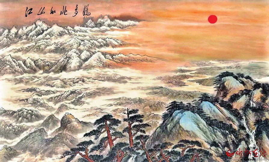 近現(xiàn)代以來,隨著人們多維的欣賞能力和畫家對自然觀察能力的深入,雪景山水畫在內(nèi)容方面有了顯著變化。這種轉(zhuǎn)型雖仍以“師造化”為基礎(chǔ),但西方繪畫理論的引進(jìn),透視、光影等要素的借鑒,使繪畫技法表現(xiàn)出新的發(fā)展趨勢。中國雪景山水畫在新歷史時期,順應(yīng)發(fā)展契機,得到振興。20世紀(jì)初,陶冷月便致力于中西融合的探索,將圓月、雪山、淡云等和諧統(tǒng)一在一片冷逸空靈的詩意世界中。他的《雪月山水圖》中,水面因月光反射閃爍著波光,這也是他營造意境的獨特手法,使之更為靈動。傅抱石一改明清輕柔疏淡的氣息,彰顯民族振奮的活躍力。他與關(guān)山月合作繪成的《江山如此多嬌》,將詩詞中“北國風(fēng)光,千里冰封,萬里雪飄”的壯闊場景表現(xiàn)得淋漓盡致。