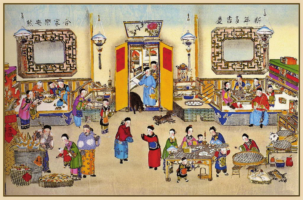 跟春節(jié)一墻之隔的是除夕。除夕對年長的人們來說,最惦念的便是那頓美味的年夜飯。作為年前最豐盛的一頓大餐,年夜飯講究既要吃飽,更要吃剩,因為“剩”即“余”,吃剩才叫“有余”,寓意從舊年到新年年年有余。年夜飯的妙味,還在于家人的團圓。年夜飯后,開始守歲,即熬年夜。長幼聚歡,直到午夜之后方睡,或待天明。正月初一凌晨,雷鳴般的鞭炮驟然炸響,新年的序幕在一片爆竹聲中開啟了。鞭炮猶如舞臺上的演員,以中國傳統(tǒng)說唱的方式,開始了一場與歡樂有關(guān)的大型實景演出,將人們一同帶入幸福深處。