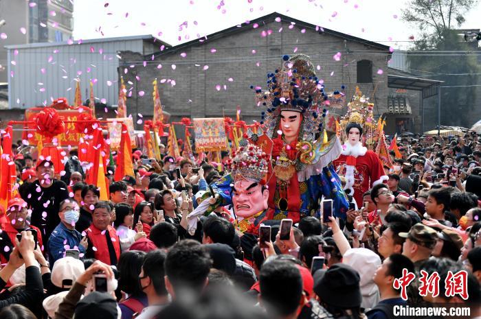 中新網(wǎng)福州2月19日電 (葉秋云)“咚咚咚……”19日上午,一陣陣鑼鼓聲從僑鄉(xiāng)福建省福州市長(zhǎng)樂(lè)區(qū)潭頭鎮(zhèn)厚福村傳出,一場(chǎng)傳統(tǒng)游神民俗活動(dòng)在此舉行,來(lái)自海內(nèi)外的游客紛紛舉起手機(jī)和相機(jī)拍照留影。