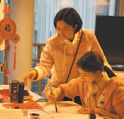 11歲的拜德細心地勾勒著龍的輪廓。他說:“我知道十二生肖,龍在中國文化里代表著力量和好運?!闭趯W寫“?!弊值膼埯愓f:“我爺爺和爸爸都去過中國,說那里風景很美,我長大也要去中國看看?!?/p>