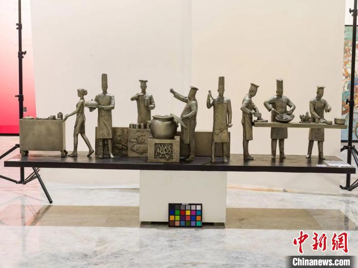 展覽現(xiàn)場(chǎng)展出的雕塑作品《粵菜師傅》。廣東省文聯(lián) 供圖