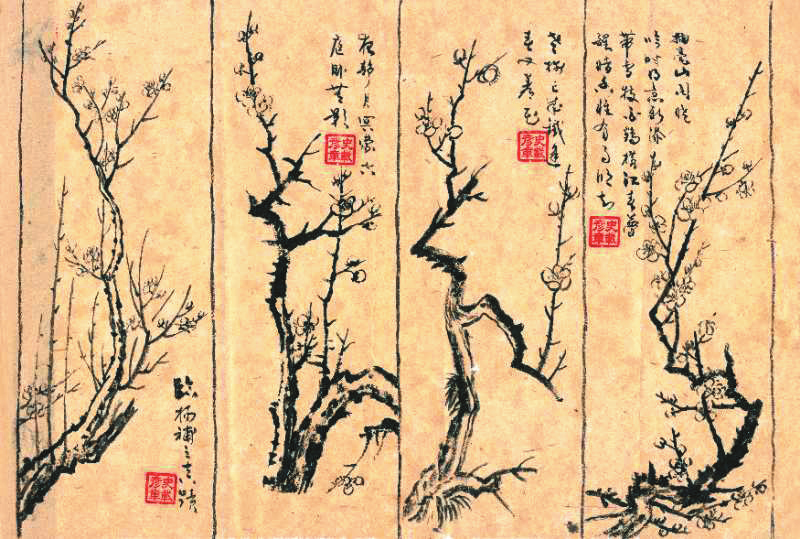 元代出現(xiàn)了墨梅藝術(shù)的另一座高峰——王冕。“我家洗硯池頭樹,朵朵花開淡墨痕。不要人夸好顏色,只留清氣滿乾坤?!边@首王冕自題于《墨梅圖》中的詠梅詩(shī),道出了他的水墨情趣。王冕所畫墨梅的獨(dú)創(chuàng)性在于“以胭脂作沒骨體”,即在水墨間用朱色點(diǎn)梅,從而營(yíng)造艷而不俗的視覺沖擊力,令人耳目一新,這在史載彥的梅花作品中亦有體現(xiàn)。