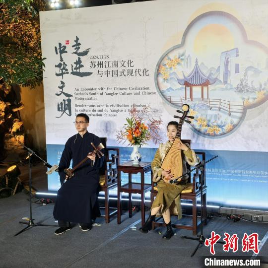 中新網(wǎng)蘇州11月29日電 (記者 鐘升)“月落烏啼霜滿天……”28日夜,蘇州古城華燈初上。以一曲蘇州評彈《楓橋夜泊》為引,“走進(jìn)中華文明——蘇州江南文化與中國式現(xiàn)代化”主題人文交流活動(dòng)在世界文化遺產(chǎn)獅子林拉開帷幕。