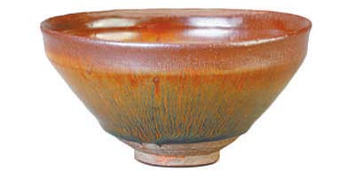 兔毫釉是建窯最為流行的釉面,釉層中均勻呈現(xiàn)細(xì)密的筋脈,形狀如兔子的毫毛一樣纖細(xì)柔長,故而得名。宋徽宗《大觀茶論》中評價,“盞色貴青黑,玉毫條達(dá)者為上”,蔡襄詩云“兔毫紫甌新,蟹眼青泉煮”,這些都體現(xiàn)了宋人對兔毫的推崇,符合“平淡乃絢爛之極”的宋代美學(xué)思想。