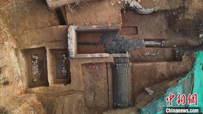 3月6日,在浙江紹興,航拍西漢晚期土坑墓。(紹興市文物考古研究所 供圖)