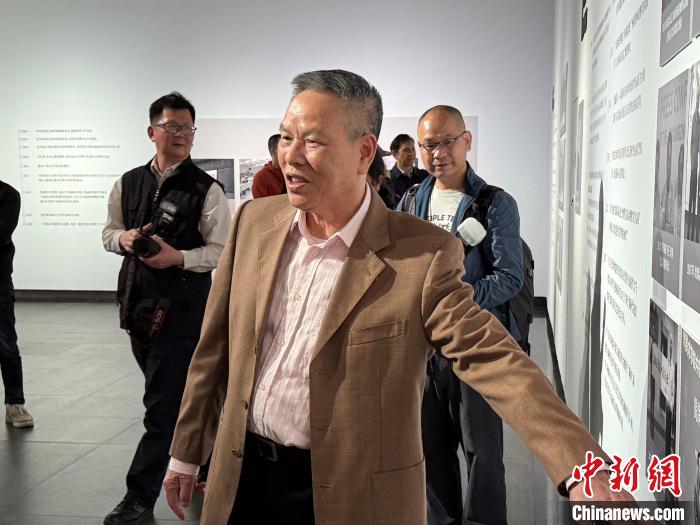 梁江向觀展者介紹作品故事。方偉彬 攝