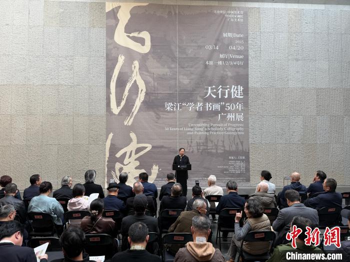 中新網(wǎng)廣州3月16日電 (記者 方偉彬)天行健——梁江“學(xué)者書畫”50年廣州展16日在廣東美術(shù)館開幕,活動(dòng)由中國美術(shù)館、中國國家畫院、廣東美術(shù)館共同主辦。
