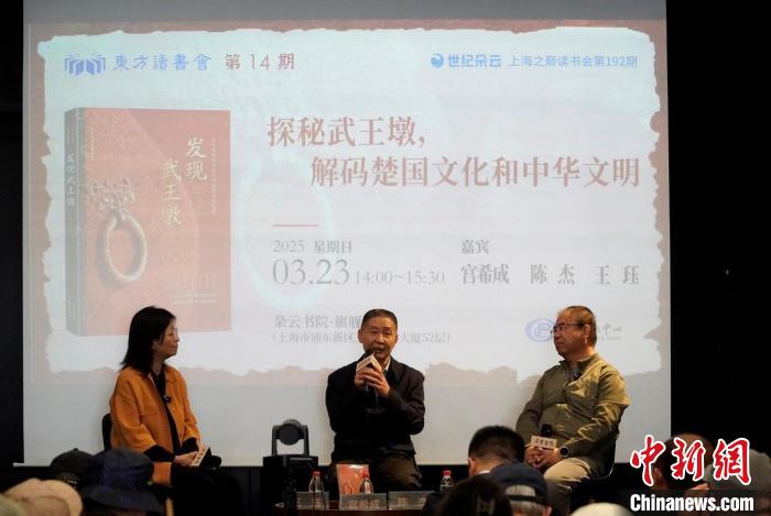 中新網(wǎng)上海3月24日電 (記者 王笈)由東方出版中心主辦的東方讀書(shū)會(huì)之“探秘武王墩,解碼楚國(guó)文化和中華文明”23日在上海舉行,圍繞《發(fā)現(xiàn)武王墩》一書(shū)以及武王墩墓的發(fā)掘進(jìn)展、出土文物等話(huà)題展開(kāi)精彩對(duì)談。