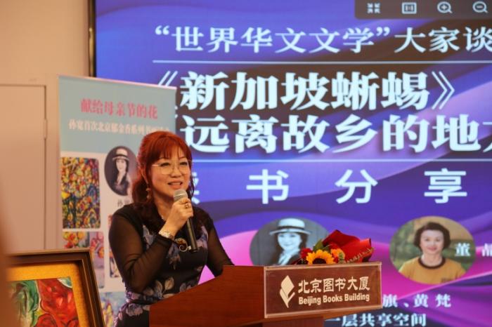 中新網(wǎng)5月12日電 5月11日,“世界華文文學(xué)”大家談讀書(shū)分享會(huì)在北京舉辦,藝術(shù)家孫寬攜新作《新加坡蜥蜴》亮相。