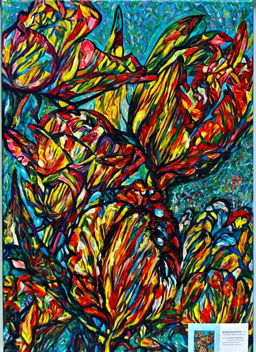 此次分享會(huì)還展出了孫寬的油畫(huà)作品郁金香系列十余幅。她的油畫(huà)藝術(shù)風(fēng)格,以強(qiáng)烈的色彩和抒情性著稱(chēng),受現(xiàn)代派,后現(xiàn)代派繪畫(huà)影響,擅長(zhǎng)通過(guò)冷色調(diào),尤其是藍(lán)色表達(dá)情感,作品如《落地生根》《藍(lán)色突圍》《核》等被評(píng)為詩(shī)性繪畫(huà)。