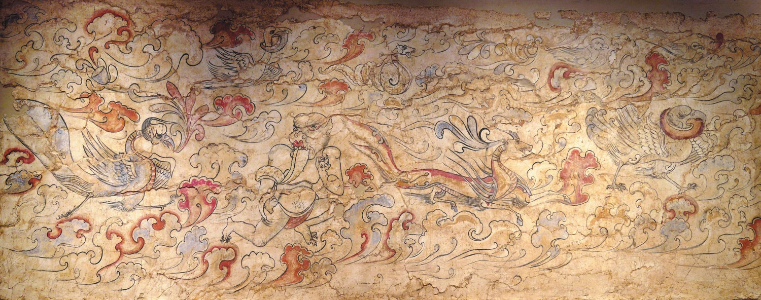 忻州北朝墓葬壁畫中《升天圖》局部 北朝墓群是忻州市文物保護(hù)單位,現(xiàn)存地表的高大封土堆有5個(gè),封土堆底徑40——50米,高度5——8米。此次發(fā)掘的壁畫墓位于忻府區(qū)蘭村鄉(xiāng)下社村東北約600米處。 尋找封土的秘密 2013年春,山西大學(xué)歷史文化學(xué)院一名考古專業(yè)的學(xué)生在忻州開展調(diào)查研究,發(fā)現(xiàn)一處平整寬闊的土地上有一個(gè)高大土堆,懷疑這是一座北朝大墓的封土堆,隨后便向考古部門報(bào)告了此事。不久,當(dāng)時(shí)的山西省考古研究所派人趕赴忻州,與忻州市文物管理部門工作人員合力進(jìn)行調(diào)查。經(jīng)過詳細(xì)考察,確定此處是一座規(guī)格較高的大墓,墓室內(nèi)墻上還有壁畫。 為加強(qiáng)對(duì)忻州北朝墓葬壁畫的保護(hù),山西省考古研究院、山西博物院聯(lián)合忻州文物部門對(duì)墓葬進(jìn)行搶救性發(fā)掘,共清理壁畫約200平方米,不僅首次發(fā)現(xiàn)同時(shí)期墓葬中的木結(jié)構(gòu)建筑壁畫,還發(fā)現(xiàn)了目前國(guó)內(nèi)發(fā)現(xiàn)面積最大的北朝墓葬狩獵圖。 揭開古墓的面紗 制定了完善的發(fā)掘和保護(hù)計(jì)劃后,考古隊(duì)正式開始發(fā)掘。工作人員在探方內(nèi)發(fā)現(xiàn)了白灰線,經(jīng)過仔細(xì)清理平面,墓道邊線清晰呈現(xiàn),墓道長(zhǎng)約31米,寬約3.5米。接著就是墓道的發(fā)掘工作,在對(duì)墓道小面積的解剖過程中,發(fā)現(xiàn)墓道的建法很特殊——是一條很寬的墓道,兩側(cè)各砌起一道土坯墻,墻上涂抹著一層摻有麥秸的黃泥,黃泥表面加抹了一層白灰,形成地仗層。工作人員在小面積的解剖過程中,非常注意對(duì)壁畫的保護(hù),因此在靠近墓壁的地方仍保留了10——15厘米的填土,準(zhǔn)備發(fā)掘到一定程度后再清理。 甬道位于墓道與墓室之間,平面呈長(zhǎng)方形,長(zhǎng)3米,寬1.95米,高3.2米,拱形券頂。甬道南端原有石門,現(xiàn)僅殘存石質(zhì)門楣和門額。門額上方砌一堵門墻,口寬2.5——3.37米,高6.47米,用以繪制壁畫。墓門上方還有一道墓門墻,極為罕見。沿甬道往北是墓室,墓室砌筑于方形土壙?jī)?nèi),平面為方形,東西長(zhǎng)5.9米,南北寬5.75米,高約8.4米,穹窿頂,四壁厚0.45米。四面墻壁原均有壁畫,現(xiàn)僅余頂部星象圖保存較好。 經(jīng)過考古隊(duì)反復(fù)討論,最后決定在墓道上方搭建鋼結(jié)構(gòu)彩鋼大棚,并安裝監(jiān)控、警燈,派專人負(fù)責(zé)工地保衛(wèi)。目的一是為了保護(hù)墓葬,減少人員進(jìn)出;二是保護(hù)壁畫,減少陽光、空氣、水對(duì)壁畫的破壞;三是可以減少雨季對(duì)墓葬的影響,同時(shí)便于發(fā)掘保護(hù)。2013年10月,墓道發(fā)掘工作大面積展開,經(jīng)過半個(gè)多月,發(fā)現(xiàn)墓道西壁出現(xiàn)面積較大的輕微霉斑,采取物理清理后基本穩(wěn)定。 隨著發(fā)掘深入,氣候慢慢轉(zhuǎn)冷,為了保護(hù)壁畫,考古隊(duì)給墓群修筑了取暖設(shè)施。在大棚外壘砌地爐,讓暖氣經(jīng)過工作棚內(nèi)東西兩側(cè),使墓道內(nèi)溫度基本保持在10℃左右。這樣做的好處首先是墓道壁畫不會(huì)經(jīng)歷因溫度大幅變化導(dǎo)致的壁面干裂脫落,其次壁畫顏色還可以保持鮮艷的本色,不至于脫色掉皮,同時(shí)也給清理工作帶來便利。 重現(xiàn)壁畫的精彩 為將珍貴的文化遺產(chǎn)保護(hù)好,有關(guān)部門邀請(qǐng)了國(guó)內(nèi)壁畫保護(hù)領(lǐng)域的專家舉行座談會(huì)。經(jīng)過現(xiàn)狀調(diào)查、科學(xué)分析及試驗(yàn)性修復(fù),嚴(yán)格遵循國(guó)家文物保護(hù)法規(guī),設(shè)計(jì)了一個(gè)壁畫揭取保護(hù)方案。由于草木根系布滿整個(gè)畫面,造成白灰層地仗與麥秸泥地仗的疏松甚至分離,所以在壁畫保護(hù)過程中,需要最大限度剪除草木根系,恢復(fù)白灰層的穩(wěn)定。白灰層地仗表面附著的污塵,一經(jīng)鈣化就會(huì)給清理工作帶來較大困難,經(jīng)過反復(fù)實(shí)驗(yàn),工作人員決定用竹簽從各個(gè)方向反復(fù)剔除的方法對(duì)其進(jìn)行清理。針對(duì)白灰層地仗錯(cuò)位疊壓引起白灰層與麥秸泥地仗分離的情況,工作人員采取直接在疊壓邊緣加固的方法。 此次發(fā)掘以壁畫保護(hù)為主。上層壁畫粉碎情況嚴(yán)重,保護(hù)組對(duì)壁畫碎塊一一加固,對(duì)壁畫顏料進(jìn)行封護(hù),并對(duì)壁畫表面病害做了記錄與分析,同時(shí)使用干濕度測(cè)試儀對(duì)壁面的不同顏料、不同區(qū)域進(jìn)行跟蹤監(jiān)測(cè)。發(fā)掘進(jìn)度雖然緩慢,但是發(fā)掘出的壁畫均得到了有效保護(hù)。通過與浙江大學(xué)文化遺產(chǎn)研究院、山西晉之源文化藝術(shù)公司兩家機(jī)構(gòu)合作,每發(fā)掘一層壁畫,便使用儀器及時(shí)掃描,將壁畫內(nèi)容、顏色等信息盡可能完整保存下來。彩色打印出圖后,經(jīng)過比較,專家組對(duì)掃描效果非常滿意,認(rèn)為比傳統(tǒng)的壁畫臨摹效果好、時(shí)間短、花費(fèi)低、易保存。 探究古人的世界 山西發(fā)現(xiàn)的大型北朝壁畫墓很多,被人們熟知且規(guī)格較高的有婁睿墓、徐顯秀墓等。從壁畫內(nèi)容及規(guī)模來看,忻州北朝墓壁畫都比同時(shí)期墓群的內(nèi)容更加豐富。駐足墓道南端,目光向北直達(dá)墓室,看到