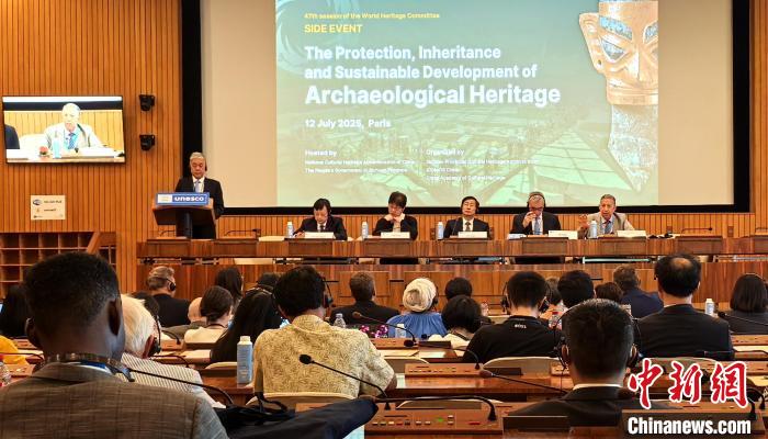 當(dāng)?shù)貢r(shí)間7月12日晚,第47屆世界遺產(chǎn)大會(huì)“考古遺產(chǎn)保護(hù)傳承與可持續(xù)發(fā)展”邊會(huì)在巴黎舉行。 主辦方供圖