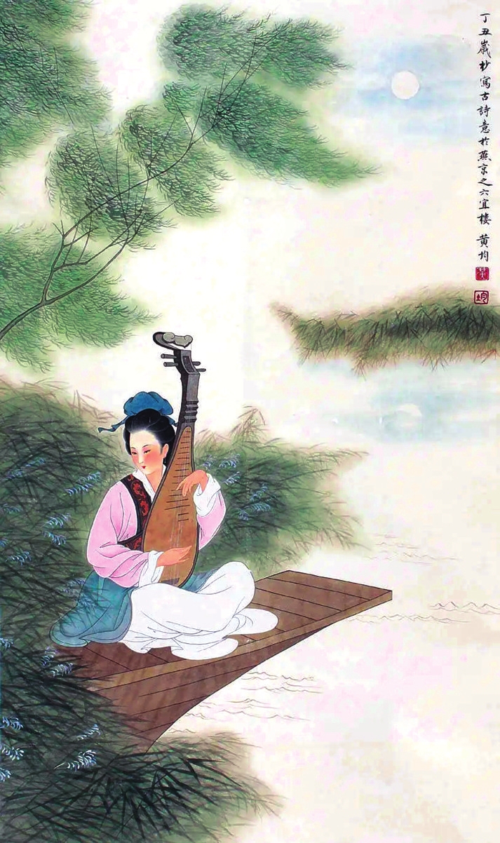唐代的琵琶發(fā)展出現(xiàn)了一個高峰。上至宮廷樂隊,下至民間演奏,都少不了其身影,琵琶的樂隊領奏地位也是在那時奠定的。唐代詩人白居易在《琵琶行》中生動描繪了琵琶演奏場景和其音樂效果:“大弦嘈嘈如急雨,小弦切切如私語。嘈嘈切切錯雜彈,大珠小珠落玉盤?!?/p>
