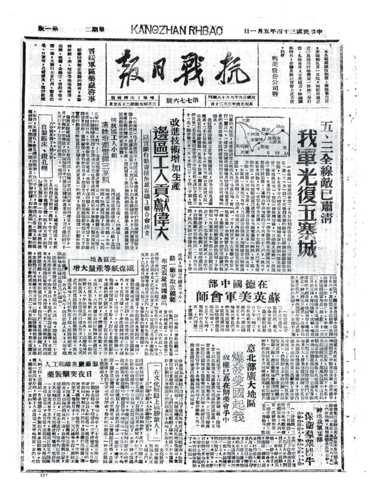 抗戰(zhàn)時(shí)期,忻州既是晉察冀、晉綏兩大根據(jù)地的中心腹地,也是抗戰(zhàn)初期全面抗敵的主戰(zhàn)場(chǎng)。忻州以其地理咽喉、戰(zhàn)役要沖、根據(jù)地核心和人民戰(zhàn)爭(zhēng)典范的多重角色,成為抗日戰(zhàn)爭(zhēng)中抵御日軍侵略、堅(jiān)持?jǐn)澈蠖窢?zhēng)的戰(zhàn)略支點(diǎn)之一。其歷史貢獻(xiàn)不僅體現(xiàn)在軍事上,更彰顯了中華民族不屈不撓的抗戰(zhàn)精神。隨著八路軍平型關(guān)大捷、雁門關(guān)伏擊戰(zhàn)、夜襲陽(yáng)明堡飛機(jī)場(chǎng)等戰(zhàn)役勝利,1937年11月7日晉察冀軍區(qū)在五臺(tái)成立。12月11日,《抗敵報(bào)》誕生。1940年11月,《抗敵報(bào)》改名為《晉察冀日?qǐng)?bào)》,鄧拓任報(bào)社主任。《抗敵報(bào)》最初在五臺(tái)石嘴村石印,后改鉛印。1938年1月,晉察冀邊區(qū)行政委員會(huì)在河北阜平成立,兩月后,邊區(qū)行政委員會(huì)遷駐五臺(tái)射虎川臺(tái)麓寺,報(bào)社、印刷廠分駐海慧庵、蛤蟆石古佛寺。1940年9月18日,晉綏分局機(jī)關(guān)報(bào)《抗戰(zhàn)日?qǐng)?bào)》,伴隨著隆隆炮火聲,在距離忻州不遠(yuǎn)的興縣艱難創(chuàng)刊。自此,那些戰(zhàn)地記者、通訊員甚或普通民眾,有名的,無(wú)名的,以個(gè)人名義,以集體名義,在極其艱苦的條件下,用滾燙筆尖秉筆直書,為我們珍存了那些發(fā)生在忻州大地上前仆后繼、可歌可泣的抗戰(zhàn)故事,也讓今天的人們一旦捧讀就會(huì)熱血沸騰。