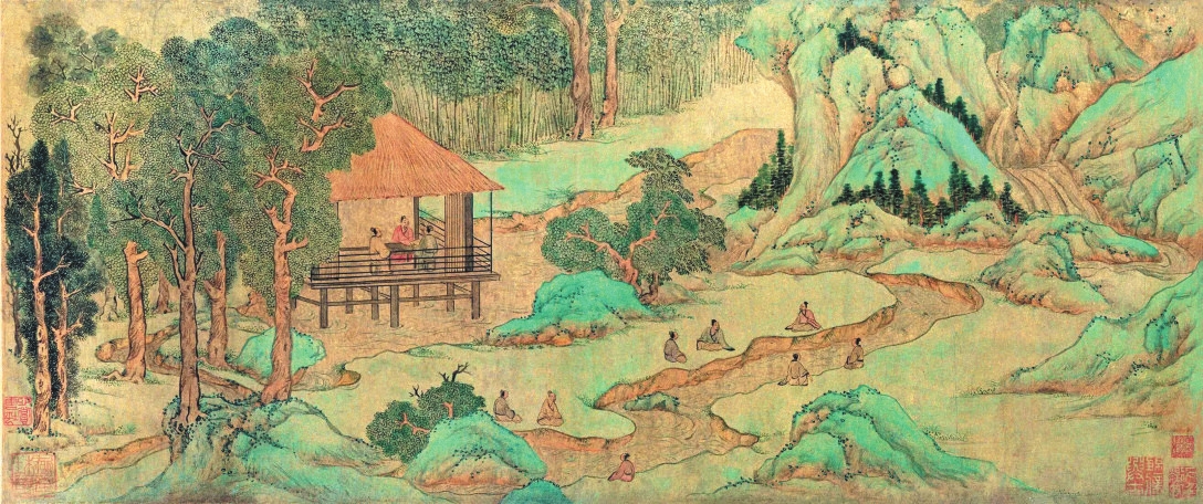 自宋代起,商賈或官宦常邀請(qǐng)好友、文人、畫(huà)師于亭中雅聚,作飲酒、和詩(shī)、品茗、撫琴的風(fēng)雅活動(dòng)?!锻ひ分惺珍浟税儆嗥び洠渲芯陀型豸酥短m亭集序》、歐陽(yáng)修《醉翁亭記》《豐樂(lè)亭記》、蘇軾《放鶴亭記》等。刺史歐陽(yáng)修與民同樂(lè):“俯仰左右,顧而樂(lè)之。于是疏泉鑿石,辟地以為亭,而與滁人往游其間。”亭成為他表達(dá)人生追求、人格志向的物象,而亭記描述的內(nèi)容也已遠(yuǎn)超建筑物本身。亭子的存在不僅是為觀景、停歇、雅集,文人的喜好與情感,也讓亭子逐漸成為一種顯著的文化符號(hào)。