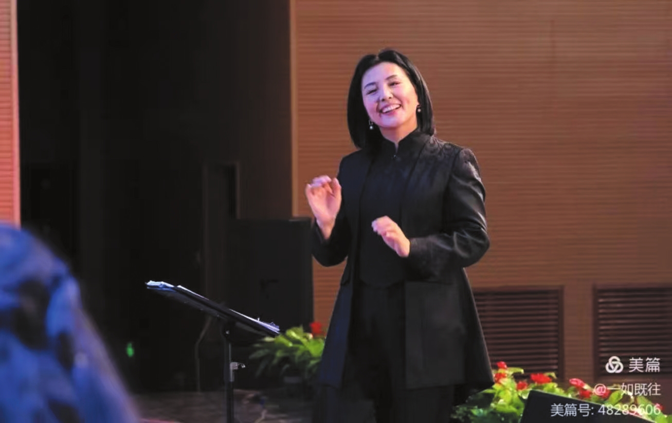 趙桂珍老師身著正裝,目光灼灼,舉手投足間盡顯專業(yè)風(fēng)范。抬手示意預(yù)備,她的動(dòng)作行云流水、起收自如,每一個(gè)指揮手勢(shì)、每一種情緒表達(dá)都極具感染力。成員們層次豐富的和聲如溪流匯聚,奔涌向前,從《九兒》的如泣如訴到《壯美延安》的恢宏壯闊,深情的余音未散,鏗鏘的旋律已奔涌而至。隨著最后一個(gè)音符落下,臺(tái)下掌聲久久不息。