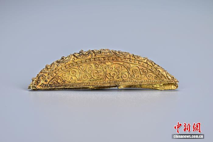 圖為唐代馬三娘墓出土的金梳背。(資料圖,陜西省考古研究院供圖)