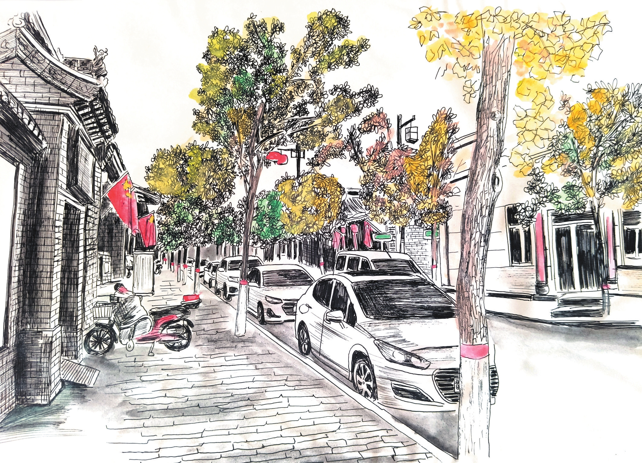 作為一種獨(dú)特的藝術(shù)形式,鋼筆畫(huà)以其細(xì)膩的線條、嚴(yán)謹(jǐn)?shù)臉?gòu)圖,通過(guò)控制握筆的速度和力度,畫(huà)出不同粗細(xì)的線條,從而表現(xiàn)物象。岢嵐縣美術(shù)教育工作者侯龍飛近年來(lái)通過(guò)鋼筆畫(huà)記錄生活、表達(dá)情感,他的系列鋼筆畫(huà)《忻州古城》《岢嵐街景》等作品描繪城市變遷與時(shí)代風(fēng)貌走紅網(wǎng)絡(luò)。