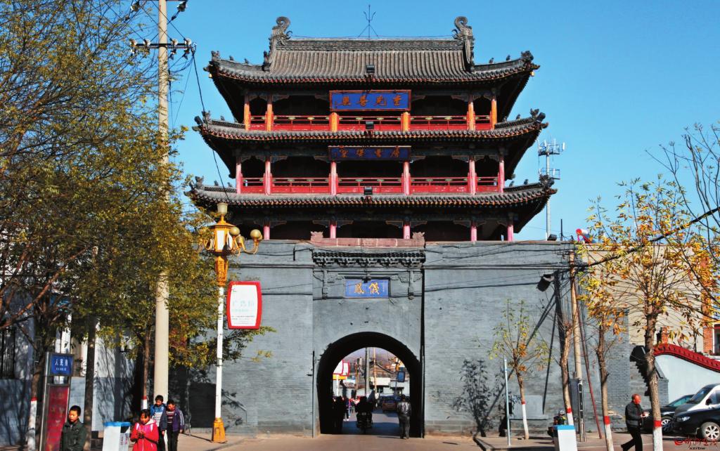 寧武,明成化二年(1466年)設(shè)關(guān),弘治十一年置守御千戶所。萬(wàn)歷三十四年(1606年)城墻包磚,并筑東西關(guān)城。東西為街,南北為巷,共41條街巷。那雄偉高大的城墻,把城池包裹得嚴(yán)嚴(yán)實(shí)實(shí)?!秾幬涓尽酚涊d,周長(zhǎng)七里一百二十步,高三丈六尺。東門曰“仁勝”,西門曰“仁和”,南門曰“迎熏”,北門曰“鎮(zhèn)朔”,上建飛樓。1606年,寧武道郭光復(fù)又筑東西關(guān)城,西關(guān)門曰“永寧”,其南出者曰“阜財(cái)”:東關(guān)門曰“久安”,其南出者曰“解慍”。萬(wàn)歷二年(1574年)筑護(hù)城墩于城北山上,基高二丈,基上為臺(tái),臺(tái)上有樓三重,登之可眺百里。乾隆六年(1741年),東關(guān)門樓圮,知府魏元樞重修,曰“望華”,并修南北二角樓。城南接鳳凰山,寧武人又呼之為“鳳城”。1937年,日軍侵占寧武縣城,這些城樓遭到嚴(yán)重毀壞。