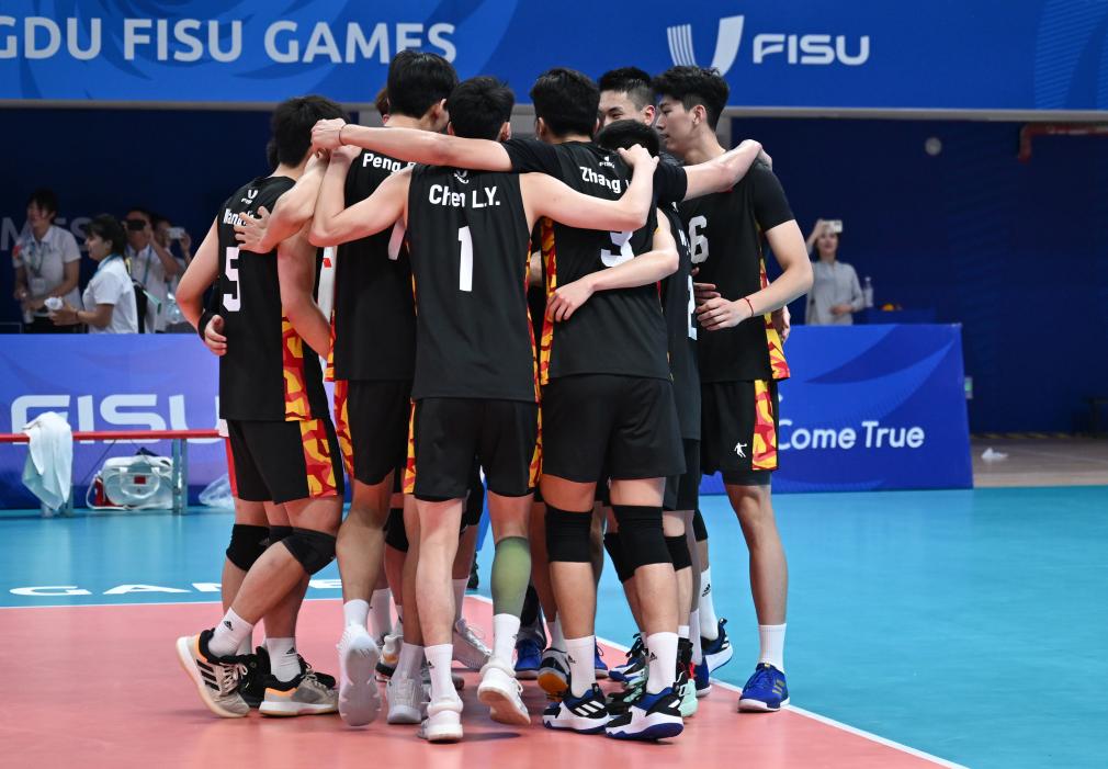 在成都大運(yùn)會男排小組賽C組的比賽中,中國隊以25:20、25:18和25:9擊敗烏克蘭隊,贏得兩連勝的同時提前晉級八強(qiáng)。