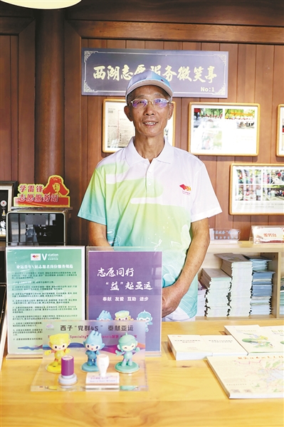 “不培訓(xùn)不上崗,不合格不上崗”,這是亞運(yùn)城市志愿者上崗的“硬要求”,也是景區(qū)志愿者做好服務(wù)的“金名片”。年過(guò)七旬的志愿者施志平,已經(jīng)連續(xù)在西湖邊服務(wù)了11個(gè)年頭?!白罱南词珠g怎么走”“音樂(lè)噴泉在哪里看”“西湖游船哪里可以坐”,這些問(wèn)題他一天不知要回答多少遍,“馬上開(kāi)亞運(yùn)會(huì)了,會(huì)有更多人來(lái)到杭州、來(lái)到西湖,我也希望能夠?yàn)楹贾荻嘧鲂┴暙I(xiàn)?!笔┲酒秸f(shuō),“最近我們也從年輕人身上學(xué)到了很多技能,尤其是英語(yǔ),希望到時(shí)候能為大家提供更周到的服務(wù)。”