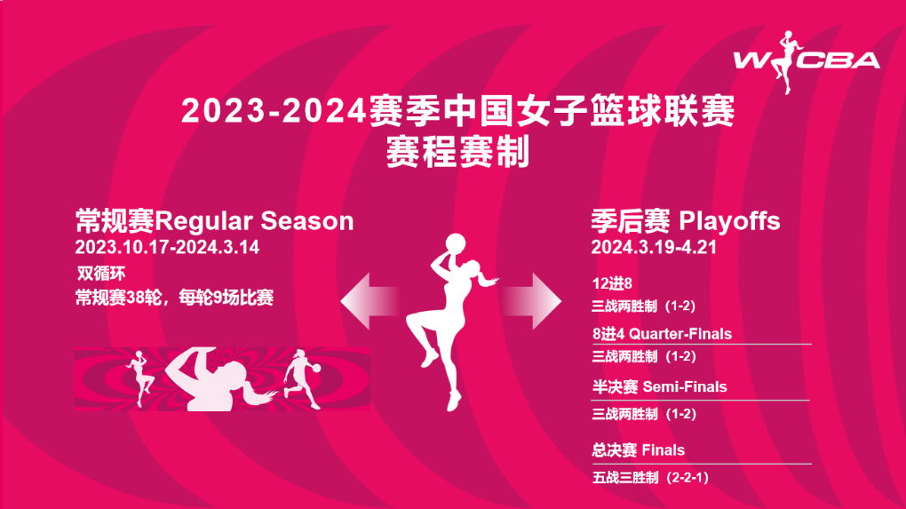 新賽季W(wǎng)CBA聯(lián)賽采取主客場(chǎng)雙循環(huán)賽制,常規(guī)賽38輪,每輪9場(chǎng)比賽。季后賽三戰(zhàn)兩勝制,總決賽五戰(zhàn)三勝制。