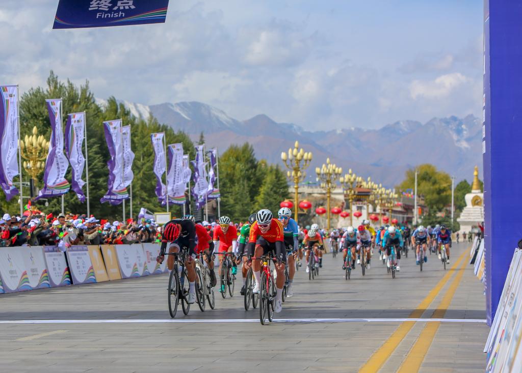 10月17日,中國國家隊(duì)選手王瑞東(前右)在比賽中沖線。新華社記者 邵澤東 攝 共有17支車隊(duì)參與角逐。最終,澳大利亞ARA洲際隊(duì)獲得團(tuán)體總成績第一名,SCOM-泰山體育車隊(duì)的托雷斯·比利亞雷亞爾獲得個人總成績第一名,李寧之星車隊(duì)的姜治慧獲得個人沖刺總積分第一名,李寧之星車隊(duì)的白利君獲得亞洲最佳個人。 “高原比賽海拔很高,是對自身的一種挑戰(zhàn)。最后沖刺階段是在窒息一樣的身體感受下完成的,實(shí)現(xiàn)了自我突破。接下來我會繼續(xù)訓(xùn)練,全力備戰(zhàn)中國職業(yè)聯(lián)賽,也希望能再來西藏參加比賽?!苯位壅f。