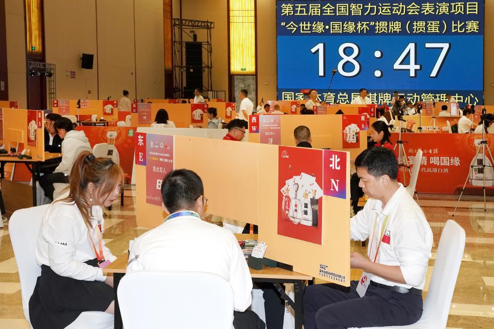 這是摜蛋項(xiàng)目首次進(jìn)入智運(yùn)會(huì),比賽設(shè)男子雙人賽、女子雙人賽、混合雙人賽3個(gè)競賽項(xiàng)目,執(zhí)行國家體育總局棋牌運(yùn)動(dòng)管理中心審定的《競技摜蛋競賽規(guī)則(試行)》,分預(yù)賽、決賽兩個(gè)階段進(jìn)行。預(yù)賽采用場分制瑞士積分編排賽,進(jìn)行7輪比賽,決賽采用豪威爾制,進(jìn)行9輪比賽。比賽均采用計(jì)算機(jī)預(yù)制比賽用牌,全場同牌,以得分決定名次。