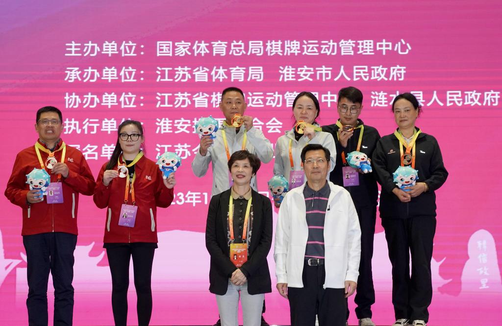 新華社南京10月19日電(記者王恒志)第五屆全國智運會表演項目摜蛋比賽19日在江蘇淮安結束,江蘇隊獲得男、女雙人組冠軍,安徽隊奪得混合雙人組冠軍。