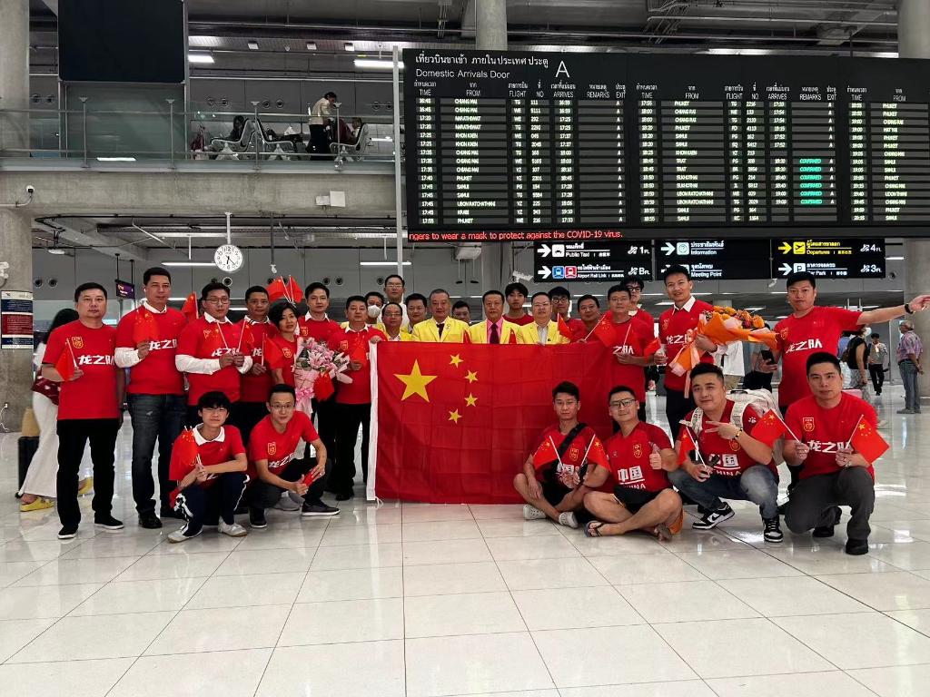 中國(guó)球迷在泰國(guó)機(jī)場(chǎng)準(zhǔn)備迎接國(guó)足抵達(dá)。