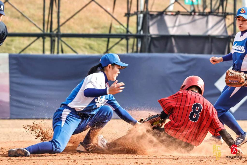 本賽季此前兩度交手,滬蘇兩隊各勝一場。29日晚,坐鎮(zhèn)主場的南工大玉麒麟隊發(fā)揮神勇,在第四局連續(xù)通過安打得分,將比分定格為11:1。根據(jù)規(guī)則,在第四局領(lǐng)先10分即可結(jié)束比賽,南工大玉麒麟隊拿下本場比賽后,積分追平上海隊,勝負關(guān)系占優(yōu)的她們最終反超上海隊,獲得總決賽資格。