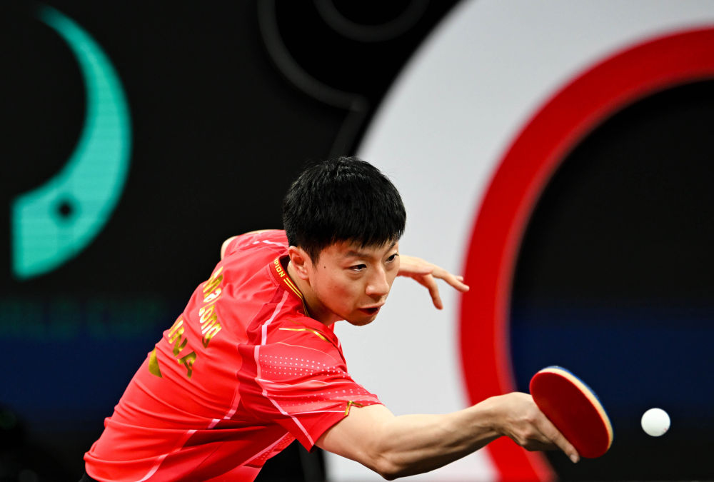 12月7日,中國隊(duì)選手馬龍?jiān)谀袉伪荣愔?。新華社記者 王曦 攝