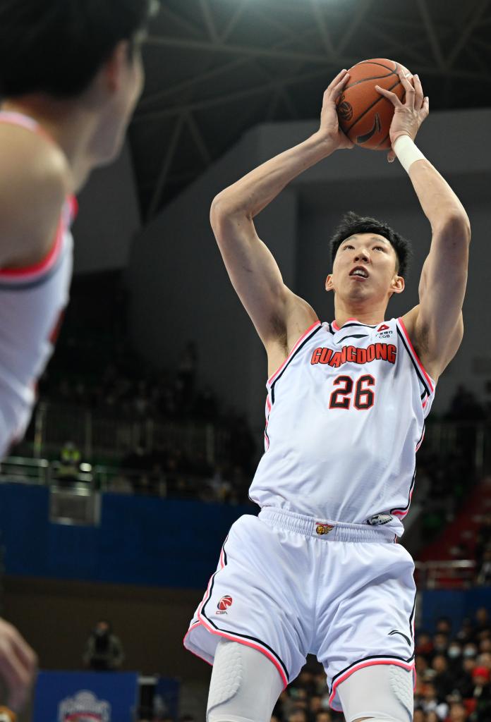 12月11日,廣東隊球員周琦在比賽中投籃。新華社記者 趙子碩 攝