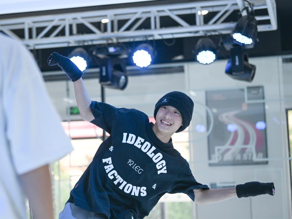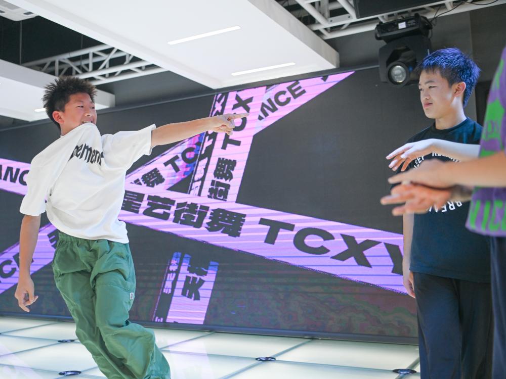 7月16日,張哲瀚(左一)在練習霹靂舞。新華社記者 王曦 攝