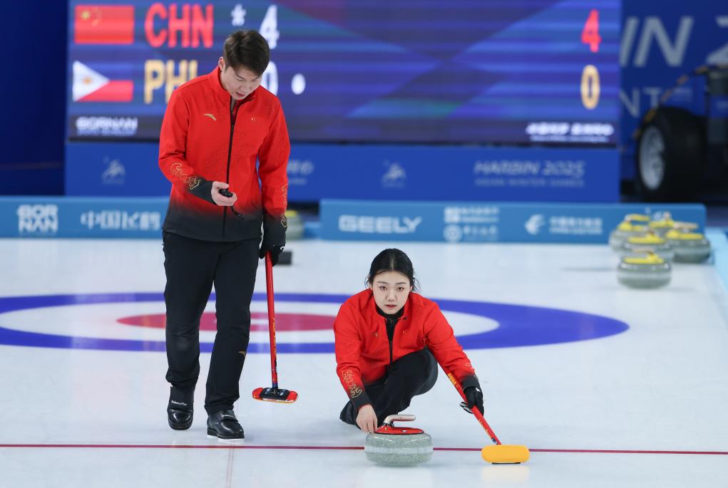 新華社哈爾濱2月5日電(記者魏婧宇、楊思琪)哈爾濱亞冬會(huì)冰壺混雙循環(huán)賽5日繼續(xù)進(jìn)行,中國隊(duì)先后戰(zhàn)勝吉爾吉斯斯坦隊(duì)和菲律賓隊(duì),實(shí)現(xiàn)開賽以來三連勝。