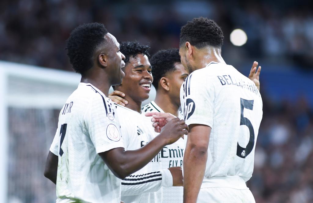 落在下風(fēng)的皇馬迅速連入兩球扭轉(zhuǎn)局面。第82分鐘,維尼修斯左路帶球一路奔襲入禁區(qū),并于底線附近送出傳中,貝林厄姆中路墊射破網(wǎng)。第86分鐘,楚阿梅尼又在小禁區(qū)邊緣將羅德里戈開(kāi)出的角球頂入球門(mén),助皇馬將場(chǎng)上比分扳為3:3平。