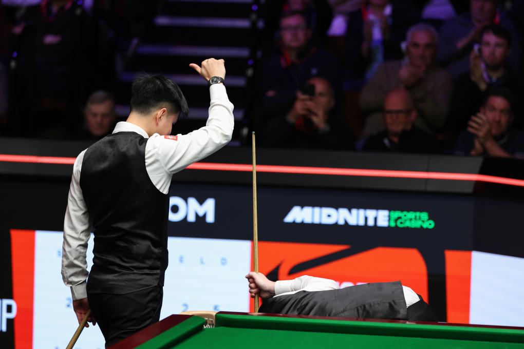 28歲的趙心童因觸碰賭球大忌,被世界職業(yè)臺球和斯諾克協(xié)會(世臺聯(lián))禁賽20個月,去年9月復(fù)出,下賽季才能重返斯諾克職業(yè)巡回賽。本次世錦賽,趙心童以業(yè)余球員身份連闖四輪資格賽后獲得正賽資格。面對去年世錦賽決賽選手瓊斯,趙心童完全掌握主動,20日取得7:2領(lǐng)先,21日以10:4結(jié)束戰(zhàn)斗,繼2022年之后又一次在謝菲爾德的克魯斯堡劇院打進第二輪。
